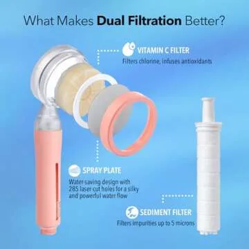 Show moreTransform your daily routine with the Barumi Pluo Handheld Filtered Shower Head in an elegant pink shade. Designed to elevate your showers into a rejuvenating spa-like retreat, this showerhead not only promises relaxation but also enhances your overall showering experience. Featuring a unique Vitamin C filtration system, the Barumi Pluo effectively removes chlorine and harmful impurities from tap water, ensuring that each drop delivers nourishing hydration for your skin and hair. Additionally, its visually appealing design combined with functional benefits creates a truly remarkable product that you'll want to use every day.