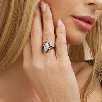 Barzel 18k Black Rhodium Plated Created Fire Opal Ring With Cubic Zirconia Accents (Black Rhodium Fire Opal, 8)