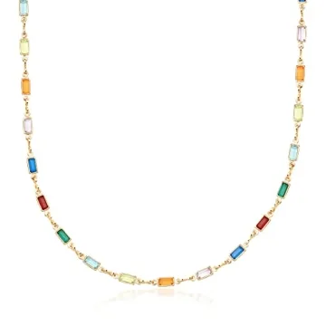 Barzel 18K Gold Plated Multi Stone Crystal Baguette Necklace for Women - Made In Brazil