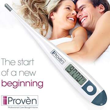 Show more Discover the unmatched precision and reliability of the Basal Body Thermometer - BBT-113Ai by iProven, specifically engineered for women seeking to track their ovulation and enhance fertility planning. This advanced thermometer stands out with its highly sensitive sensor, providing accurate temperature readings within seconds to help you pinpoint your fertile window. Designed to be user-friendly, it seamlessly integrates with every ovulation tracker app available, enabling fertility enthusiasts to monitor their cycles effortlessly. Its sleek design and compact size ensure that you can use it anywhere, making it the perfect companion for both home and travel.