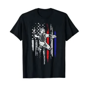 Baseball American Flag Patriotic Catcher 4th Of July Gift T-Shirt
