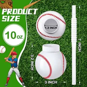 Baseball Ball Shape Cups Bulk with Straws and Lids, 10oz Plastic Reusable Baseball Party Cups Ball Shape Cups Party Favors for Kids Birthday Competition Sport Fans Player Theme Party Supplies (12 Pcs)