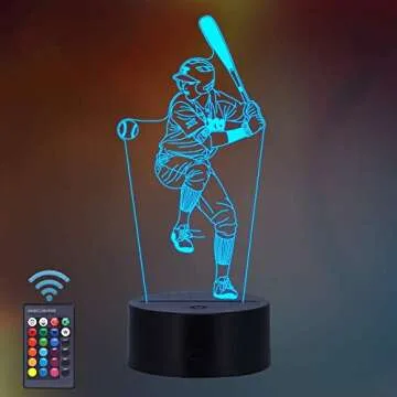 Baseball Gifts, Baseball Player 3D Night Light 16 Colors Changing Night Lamp for Kids with Remote Control, Baseball Fan Gifts from Age 2 3 4 5 6+ Years for Girls Boys Men Women