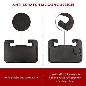 Unlike other steering wheel tray options in the market, the BASENOR steering wheel desk uniquely features a silicone grip that prevents scratches, setting it apart in terms of quality and usability. While many alternatives lack ergonomic design or require tedious installation, this tray allows for quick setup and multi-purpose functionality.