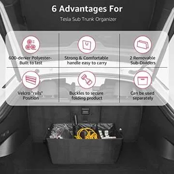 Show more If you're seeking a practical yet stylish solution to keep your Tesla Model 3 or Model Y organized, look no further than this expertly crafted auto trunk organizer. Specifically designed for 2016-2024 Tesla Model 3 and 2020-2024 Model Y vehicles, this custom-fit accessory ensures a seamless integration into your car’s trunk.