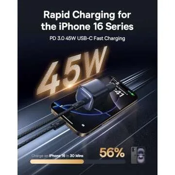 Show more Introducing the Baseus 45W PicoGo USB-C Fast Charger, your ultimate charging solution designed for modern devices. Compact yet powerful, this charger is perfect for iPhone 16 Series, Galaxy S24, and various other devices. It achieves impressive charging speeds, powering your iPhone 16 Pro to 56% and Galaxy S24 to 61% in just 30 minutes. Its sleek design, certified for safety and quality by TÜV Rheinland, provides peace of mind while ensuring your devices are charged efficiently and effectively. The advanced graphene technology allows for superior heat management, ensuring your charger remains cool to the touch while in use.