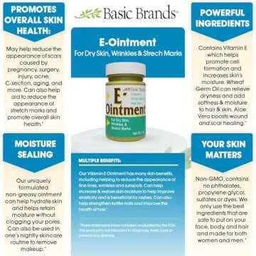 Show moreIntroducing a revolutionary skin-care solution: this premium Ointment enriched with Vitamin E, wheat germ oil, and aloe vera is designed to provide unparalleled care for your skin. Manufactured in the USA, our product comes in a convenient 2 oz bottle, ensuring you have the perfect amount for daily use. This ointment is not just a cosmetic; it works wonders by helping to protect tissue from damage that free radicals cause, which can result in wrinkles and other signs of aging.