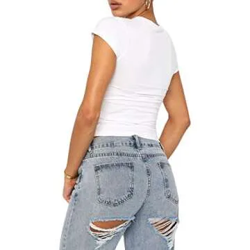 Basic Fitted Short Sleeve Tees for Women Solid Slimming Dupes Shirt Y2k Skinny Tops Summer Going Out Workout Clothing