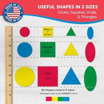 Show more Discover an exciting world of creativity and learning with our versatile package of geometric shapes from FreshCut Crafts. This unique set includes 676 easy-to-use shapes crafted from high-quality card stock, available in vibrant primary colors of blue, yellow, red, and green. Each shape comes in three sizes—small (1-inch), medium (1.5 inches), and large (2 inches)—making them ideal for a variety of educational and artistic projects.