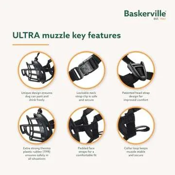 Show more The Baskerville Ultra Muzzle is a game-changer for dog owners who need a reliable and humane solution for managing their pets. This innovative product, brought to you by a well-renowned brand, allows your dog to pant and drink effortlessly, making it suitable for daily walks and longer periods of wear. Each muzzle is designed to be custom-fitted, similar to a mouth-guard, and can be heat shaped in warm water to fit various nose shapes, ensuring comfort and effectiveness.