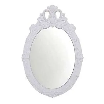 Basswood Hunters 23''x 15'' Oval Vintage Decorative Wall Mirror, White Wooden Crown Frame, Antique Princess Decor for Bedroom,Playroom,Dressers,Living Room