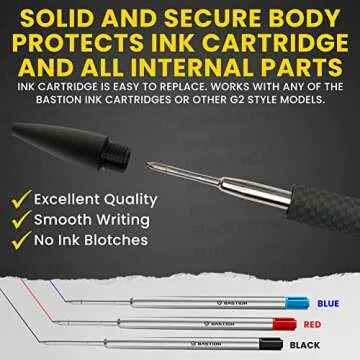 BASTION® Luxury Carbon Fiber Bolt Action Pen Durable Professional Ballpoint Pen for Travel, School and Work Birthday Gift Idea - Black Stainless Steel