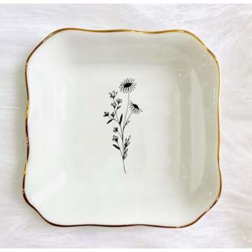 Show moreIntroducing the exquisite BAT TRANG Ceramic Floral Jewelry Dish, a charming addition to any home that reflects both elegance and practicality. Handcrafted to perfection, this beautiful piece is not just a dish, but a statement of style. Made using high-quality ceramics, this dish features a captivating floral design printed directly onto the surface, which guarantees a vibrant appearance that will last endlessly. With its compact dimensions of 3.5 x 3.5 inches, it is the ideal size for keeping your precious rings and small jewelry pieces safe and secure—making it equally suitable for your vanity, dresser, or nightstand. Elevate your gifting game with this beautifully wrapped item that makes an outstanding present for any special occasion.