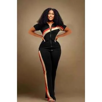 Batehif Women's Lounge Outfits Two Piece Sets 80s 90s Short Sleeve Zipper Top Flare Legging Pants