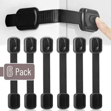Bates- Child Safety Strap Locks, 6 Pack, Black Baby Cabinet Locks, Toilet Locks Baby Proof, Child Proof Drawer Locks, Cabinet Baby Locks for Cabinets, Child Proof Cabinet Locks, Drawer Child Locks