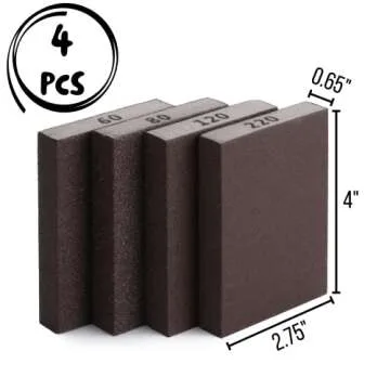 Bates- Sanding Sponge, 4 Pack, 60/80/120/220 Grit Assortment, Washable and Reusable, Sanding Block, Sandpaper Block, Sanding Blocks for Wood, Sanding Pad, Drywall Sanding Block, Drywall Sanding Sponge