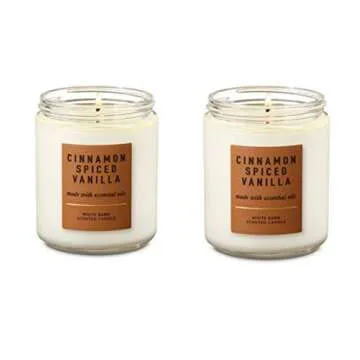 Bath and Body Works 2 Pack Cinnamon Spiced Vanilla Single Wick Candle. 7 Oz.