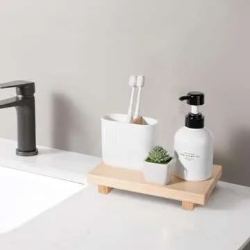 Show moreIntroducing our stunning Bathroom Counter Organizer Wood Pedestal Stand, a must-have addition for those who appreciate the beauty of nature in their home decor. Crafted from premium pine wood, this 100% handmade soap holder stands out for its environmentally friendly approach, making it the perfect compliment to your eco-conscious lifestyle. With its sturdy construction, you can trust that it is both odorless and safe to use, ensuring your home remains a serene space free from concerns about splinters or scratches.