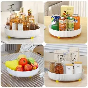 This multi-functional turntable organizer isn't strictly for cosmetics; its applications are endless! Use it in the kitchen for spices, the bathroom for toiletries, or even outdoors. The sleek, simple white finish adds a touch of elegance, making it suitable for storage rooms, living spaces, or any area in need of organization.