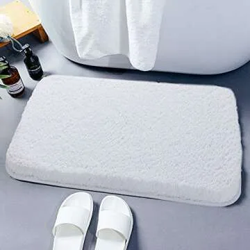 Show moreTransform your bathroom experience with the FONEYI Bathroom Rug, where luxury meets functionality. Designed to pamper your feet every time you step out of the shower, this 16"x24" plush bath mat is meticulously crafted from ultra heavy-density microfiber, providing an astounding thickness of 1.57 inches—a significant improvement over standard rugs. The high-pile fabric envelops your feet in a velvety embrace, ensuring you never have to endure the chilling touch of cold tiles again.