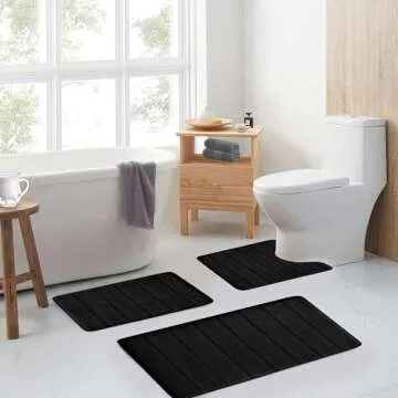 Bathroom Rugs Set Memory Foam Bath Mats Non-Slip Bath Rug Set 3 Piece,Washable Bathroom Mats,Absorbent Shaggy Rugs Super Soft U-Shaped Toilet Rug,Bathroom Carpets for Bathroom,Tub,Shower(Black)