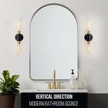 Bathroom Sconces Wall Lighting W/ Clear Glass, 2-Light Bathroom Vanity Light Fixtures, Modern Wall Lights for Mirror Living Room Hallway, Black and Gold Brushed Brass, E26 T10 Bulbs(Excluded)
