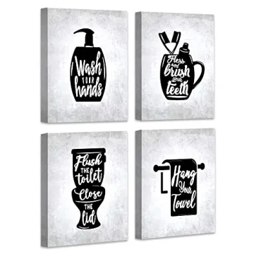 Show moreIntroducing our Funny Bathroom Wall Decor, a delightful and whimsical collection of canvas artworks designed to add a touch of humor and charm to your bathroom space. This set features four unique pieces measuring 8" x 10" each, perfectly sized to complement small bathrooms or guest essentials. Made with high-quality canvas and ready to hang upon delivery, each piece is meticulously crafted with vivid, waterproof inks that are UV resistant and fade-proof. No need to worry about moisture from showers or accidental spills, as the durable material ensures longevity and an impeccably clean appearance!