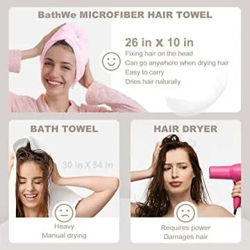 BathWe Microfiber Hair Towel Wrap, 2 Pack 26 X 10 Inch, Super Absorbent Quick Dry Towel Hair Turban for Drying Curly, Long, Thick Hair, Anti Frizz