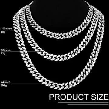 Show more Enhance your accessory collection with this exquisite set that combines a stunning link chain necklace, a fashionable hip hop link bracelet, and a dazzling pair of rhinestone earrings. Each piece showcases meticulous craftsmanship and attention to detail, making them perfect for elevating any outfit. The bracelet measures 20 cm (7.9 inches) and the necklace 50 cm (19.7 inches), so they fit comfortably for most wearers. The 12 mm width adds a touch of elegance while providing a bold statement without overwhelming your look.