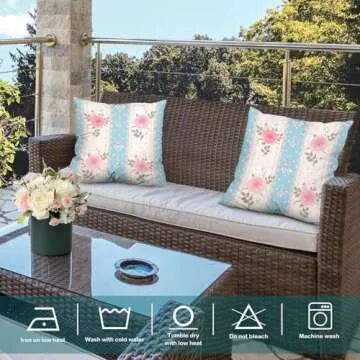 Batmerry Shabby Chic Pillow Covers 18x18 Inch Set of 2, Shabby Chic Pink Rose Pattern On Blue Stripes Double Sided Decorative Pillows Cases Throw Pillows Covers