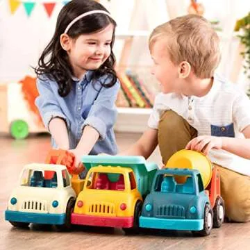 Battat- Wonder Wheels- 3-Piece Toy Truck Set – Dump Truck, Tow Truck, Cement Truck – Toy Construction Vehicles- Recyclable Materials – 1 year +