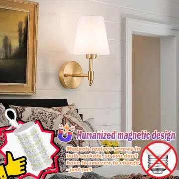 Show more Illuminate your space effortlessly with our Battery Operated Wall Sconces Set of Two. These exquisite wireless wall lights are designed to enhance your home without the limitations of traditional wiring, making them perfect for any area that needs a touch of ambiance. With a powerful 10000 mAh rechargeable magnetic bulb included, these sconces provide reliable and flexible lighting anywhere you want it. The charming white fabric shade softens the light, making it an ideal addition to your bedroom, living room, or even those dim corners that need a warm glow.