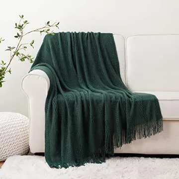 BATTILO HOME Christmas Décor Green Throw Blanket with Fringe, Geometric Bed Throws Dark Green Throws Decorative Throw Blanket for Couch, 50"x60"
