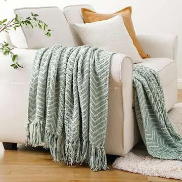 Show moreEmbrace warmth and style with the stunning BATTILO HOME Sage Green Throw Blanket, a must-have addition to your home decor. This beautifully crafted knitted throw blanket is not just an ordinary accessory; it is a personal retreat, measuring a generous 50x60 inches. Perfect for snuggling on the couch, draping over your bed, or even as a chic accent in your living room, it exudes a serene bohemian vibe that enhances any space. Made from a luxurious blend of 30% acrylic and 70% polyester, you can expect an ultra-soft, cozy embrace throughout all seasons. The unique weaving technique, with intricate patterns and plush chenille yarn, results in a delightful texture that elevates your comfort and aesthetic experience.