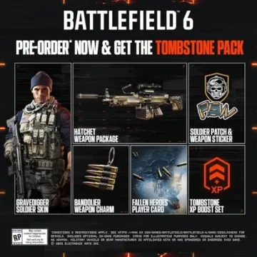 Why you will love this product? Indulging in Battlefield 6 isn’t just about playing a game; it's about stepping into a compelling world filled with camaraderie, challenges, and triumphs. Experience the rush of battle alongside friends, devise strategies, and witness the adrenaline of victory firsthand. The Tombstone Pack enhances your journey by adding a personalized touch to your gameplay, ensuring your legacy in the epic battlefield. Grab your copy today and immerse yourself in the action-packed universe of Battlefield 6!
