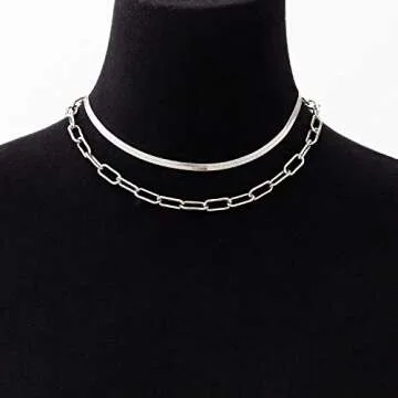 BaubleStar Link Layered Collar Necklace Silver Layering Paperclip Chain Herringbone Snake Choker Statement Fashion Jewelry for Women