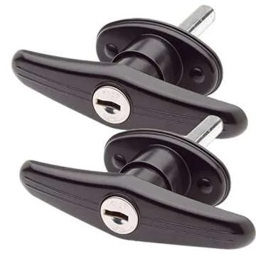 Show moreUnlock superior convenience and functionality with the Bauer T-Handle Lock, Complete Set of Two, featuring both clockwise and counterclockwise options. This comprehensive combo pack is designed with features that cater to every DIY enthusiast or professional locksmith's needs. The thoughtful assembly includes two durable T-handles, each engineered from high-quality zinc die-cast materials with a sleek black powder coat finish, ensuring both longevity and aesthetic appeal. Each handle is meticulously paired with necessary components such as keys, dust covers, cam plate spacers, and t-handle cams, providing a complete toolbox for your locking needs.