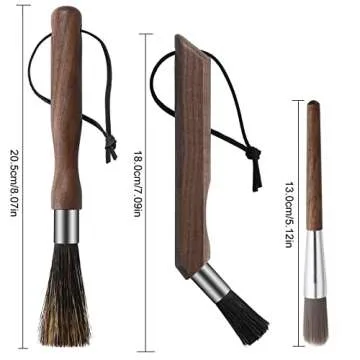 Show more Experience the ultimate in espresso care with our professional Espresso Cleaning Brush Set. This exceptional collection includes three meticulously designed brushes, specifically crafted to keep your espresso machine in impeccable condition. Made from high-quality, natural soft boar bristles, these brushes offer durability and flexibility, ensuring your machine’s components are treated with the utmost care. The elegant walnut wood handle not only provides a stunning aesthetic but also guarantees a non-slip, comfortable grip, making cleaning a breeze.