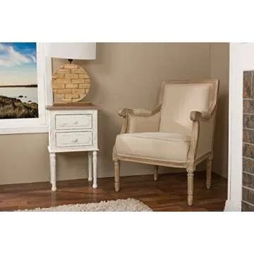 Baxton Studio Chavanon Wood and Linen Traditional French Accent Chair with Arm Rest, Light Beige