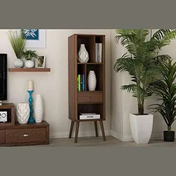 Baxton Studio FP-6785-Walnut Bookcase, 15.21LX18.41WX60.26H, Walnut Brown