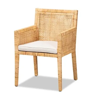 Show moreIntroducing the stunning Baxton Studio Karis Chairs - a masterful blend of elegance and comfort that seamlessly enhances any living space. Crafted with a natural finish, these chairs embody a chic coastal vibe that brings a touch of tranquility to your decor. The woven natural rattan detailing not only showcases impeccable craftsmanship but also promises durability that will stand the test of time. Enjoy the plush comfort of foam-padded removable cushions, upholstered in a soft cotton-polyester blend fabric, designed to make every seating experience a delight, yet do remember that while stylish, the cushions are not waterproof, making them ideally suited for covered areas.