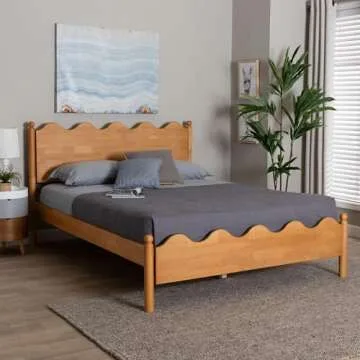 Baxton Studio Malaya Wood Platform Bed with Scalloped Edges, Queen, Oak Brown