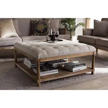 Baxton Studio Valensole French Country Weathered Oak Rectangular Coffee Table Ottoman, Beige Linen