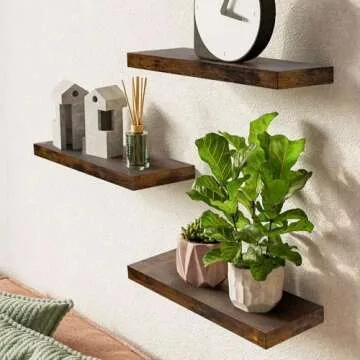 crafted from high-quality wood, these floating shelves not only enhance your living space but also provide practical solutions for storage. Measuring an impressive 16 inches in length, they offer generous space for displaying books, decorative items, and cherished souvenirs. Each shelf is treated with a protective sealant to guard against warping, ensuring that your aesthetic investment maintains its sleek appearance for years to come.
