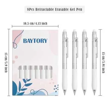 BAYTORY 8Pcs Fine Point Erasable Gel Pens, 0.5mm Retractable Black and Blue Ink Pen, Smooth Writhing Comfortable to Use for Taking Marking Planner Crossword Puzzles (White)