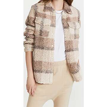 BB DAKOTA Women's Plaid Sherpa Shacket, Light Camel, S