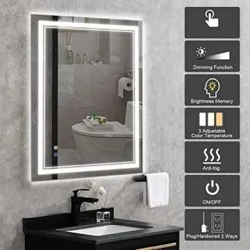 BBE 36x28 Inch LED Bathroom Mirror Vanity Mirror with Dimmable Light 2700K-6000K CRI 90+ Wall-Mounted Anti-Fog for Makeup Hardwire and Plug in (Horizontal/Vertical)