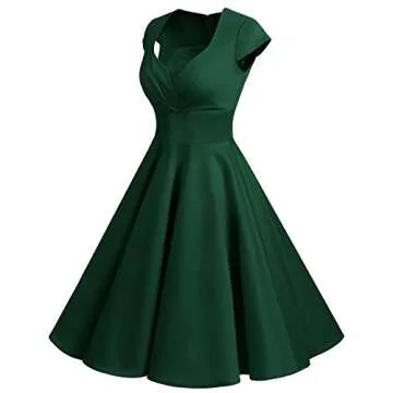 Bbonlinedress Women Short 1950s Retro Vintage Cocktail Party Swing Dresses Dark Green L