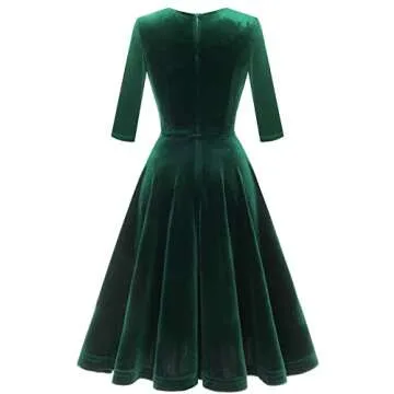 Bbonlinedress Womens Long Sleeve Velvet Dress Short Vintage Cocktail Wedding Guest Dress V-Dark Green L