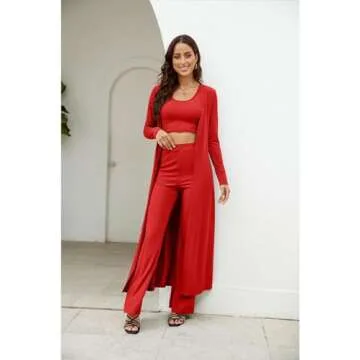 bbpawing Womens 3 Piece Outfits Open Front Cardigan Cover Up Crop Tank Tops Wide Leg Palazzo Pants Loungewear Set